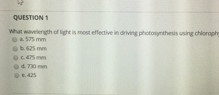 Solved Question 1 What Wavelength Of Light Is Most Effective Chegg Com
