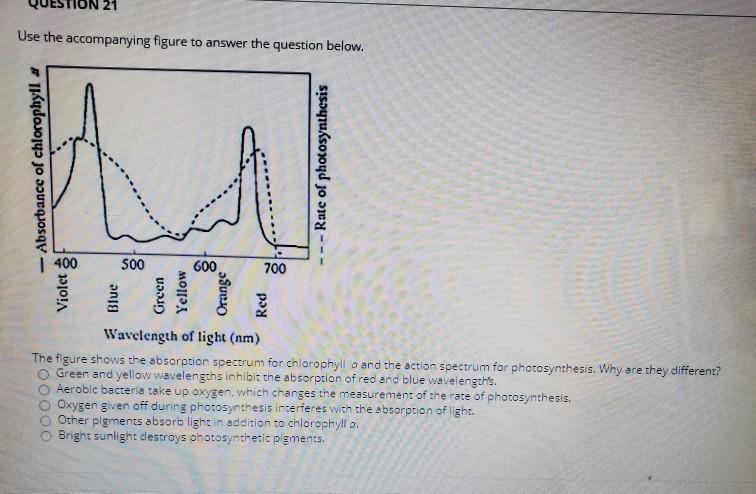 Absorbance Of Chlorophyll A Rate Of Photosynthesis 400 500 600 700 Wavelength Of Light Nm The Homeworklib